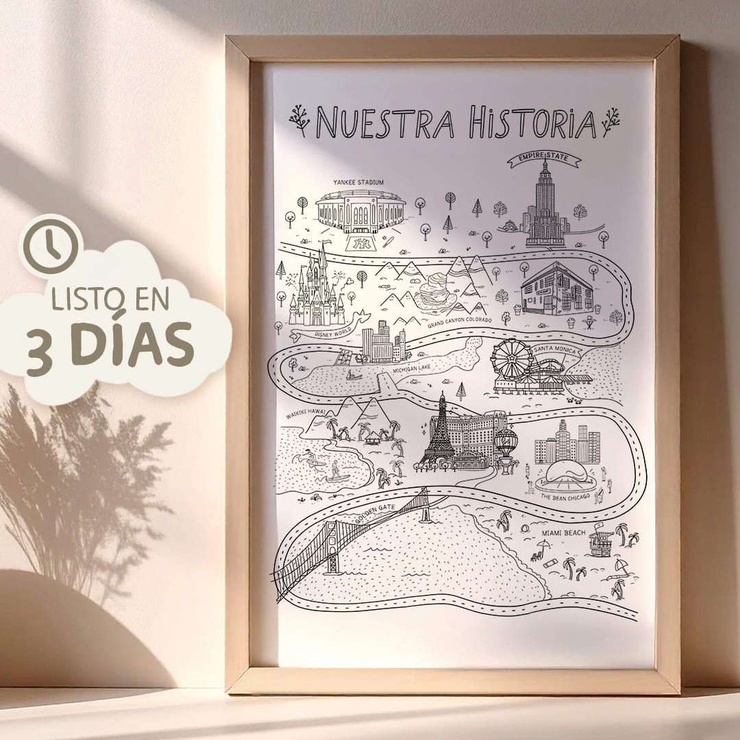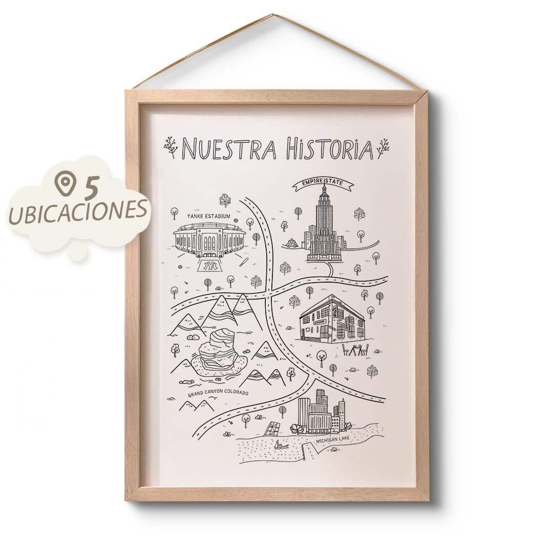 Cada rincón de tu mapa es una oportunidad para hacerlo único. Añade nombres, fechas o mensajes especiales sin coste adicional y deja que tu mapa cuente una historia inolvidable.